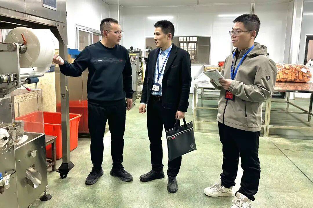 图为武平县纪检监察干部在某紫灵芝加工企业收集产业发展难题。(丘云兰 摄)
