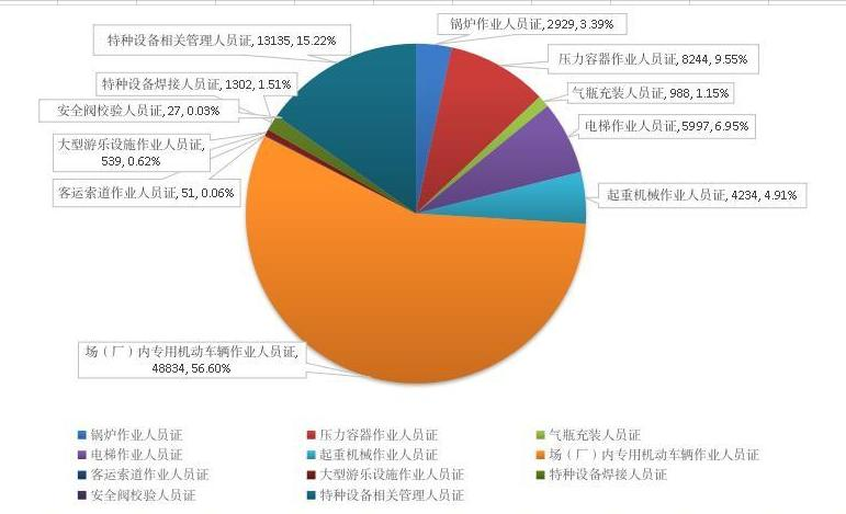 2024年,全省共核发特种设备作业人员证8.63万张,各类特种设备作业人员证发证数量和所占比例见下图: