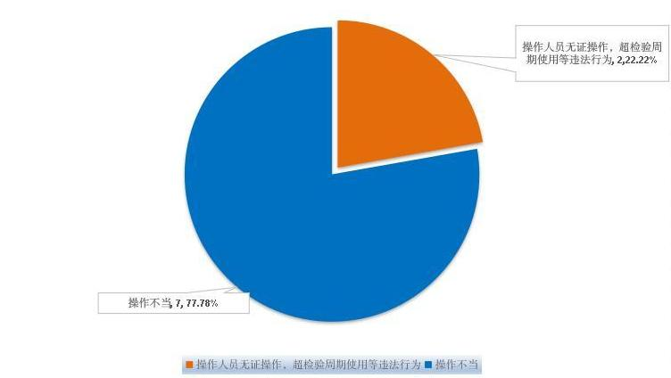 一是因违法行为导致,占事故总起数的22.22%。违法行为,包括使用未取得特种设备行政许可的单位制造、安装、修理、改造的特种设备,违法充装气瓶和罐车,操作人员无证操作,超检验周期使用,以及非承压锅炉、非压力容器因其使用参数达到《特种设备安全监察条例》规定参数等。